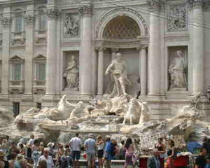 6/25(火) ローマ トレヴィの泉 「ローマへもう一度戻りたいと願うなら、 後ろ向きにコインを投げよ」と いういかにもロマンチックな言い伝えがある。 「後ろ向きにコインを二度投げる」と 願いが叶うといわれる |