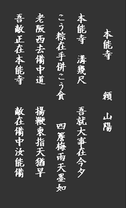 明智光秀のその後を知る後世の歴史家として頼山陽は、『本能寺』の七言律詩を次のよう に結んでいる。