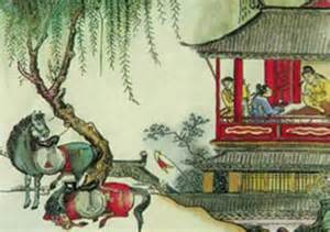 【語釈】折楊柳: 別離の時に歌う楽曲の名。楊柳 : もともと「揚」はかわやなぎ、「柳」はしだれやなぎを指すが、 ここでは「揚柳」でやなぎの総称ととらえればよい。 麴塵絲: 黄緑色の芽をつけた柳の枝。 「麴塵」はこうじのかび。 カビの色が黄緑色をしているので、柳の芽にたとえられる。 相惜 : (それ)を惜しんで。ここの「相」は「たがいに」の意ではなく、 対象を示す用法。 慇勤 : 心をこめて。「慇懃」となっている本もある。 更 : いっそう。ますます。「肯」になっている本もある。 向 : ~で。習慣的に「むかう」と読んでいるが、方向を示す用法ではなく 「在」と同じく場所を表す前置詞。詩にはよく用いられる。 【通釈】川辺の柳が、麹にひく糸のように細やかな黄緑色の若芽が萌え出でている。 馬を止め、あなたにその一枝を折っていただきましょう。 春風が柳の枝との別れを惜しむかのように、あなたの手の中にある小枝にまで優しく吹いてくるではないか。 【参考】 「折楊柳」とは、単独の詩の題名ではなく、楽府題(がふだい)という定番のテーマの一 つである。楽府(がふ)の歴史は漢代にまでさかのぼる。ただし、漢代の楽府は楽器の伴 奏と歌唱をともなう詩歌であったが、唐代のそれは必ずしも演奏形式のものではなかった らしい。むしろ作詩の工夫のほうに重点が置かれていたのであろう。 したがって、同じ楽府題に複数の作者が詩を残している場合も多い。 古来より中国では、送別の際に楊柳の枝を取って輪をつくり、旅立つ友へ贈る習慣があっ た。もっともこの詩が、実際に別離の場面で詠じられたかというと、どうもそうではない ような気がする。 送別詩の絶唱である王維「元二の安西に使いするを送る」のような、旅 中の無事を切に 祈って友を送り出す際の、情感の高まりが見られないからである。 むしろこれは、手折った柳の小枝に春風が香るという表現上の機知を楽しむために、 「別離の場面を仮想して作った詩」と見たほうがよいようだ。 送られる友人(あなた)に頼んで、柳の一枝を折らせるところなどがおもしろい。 |